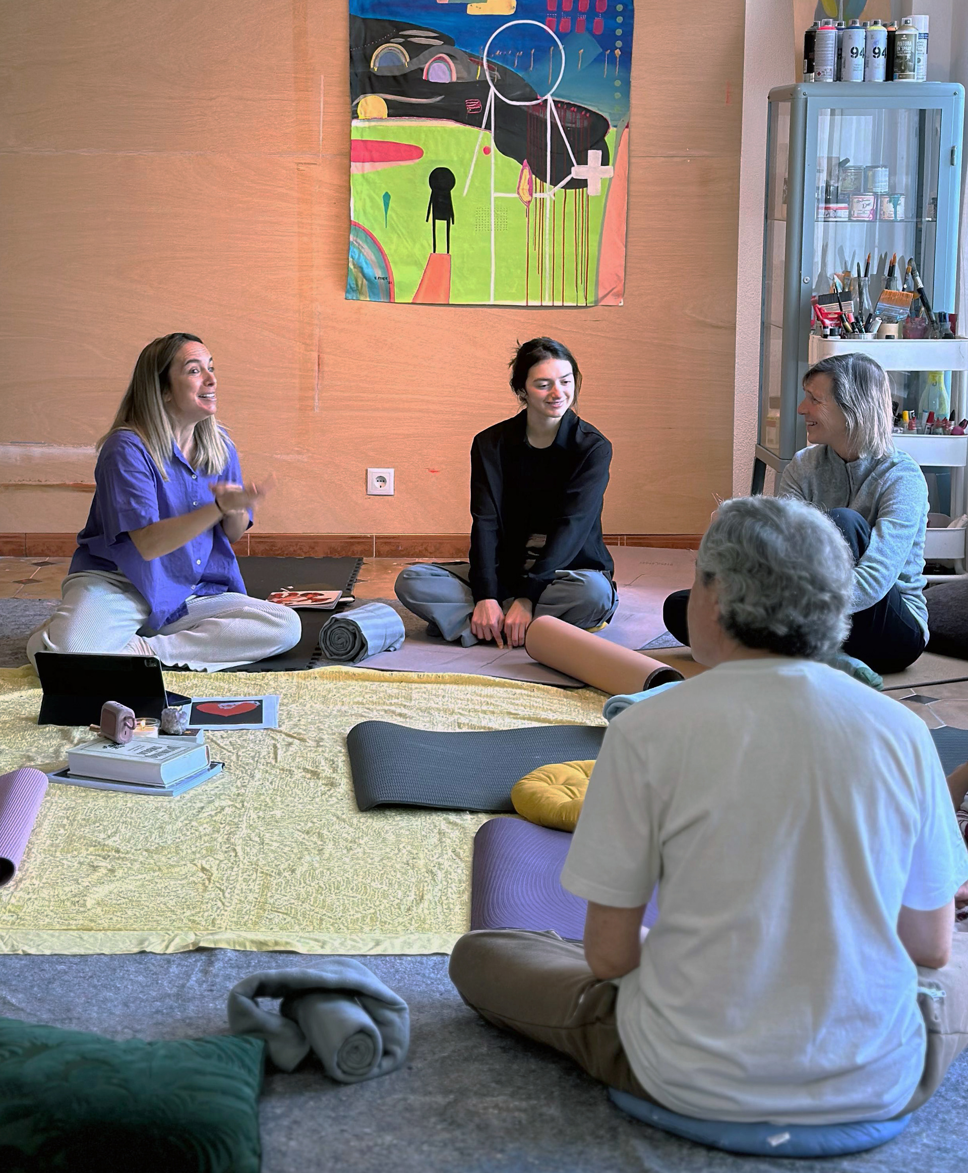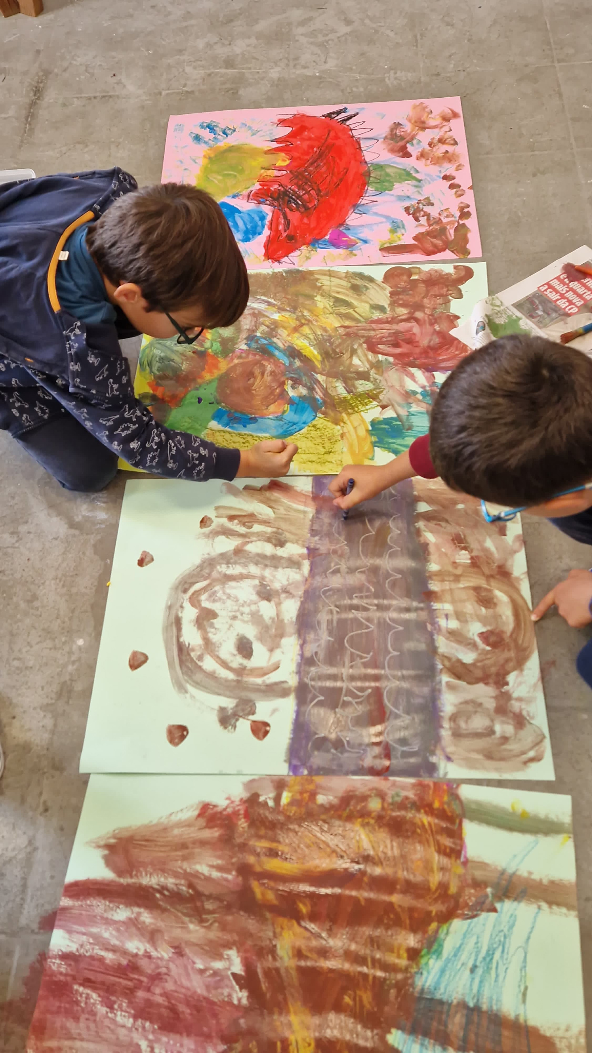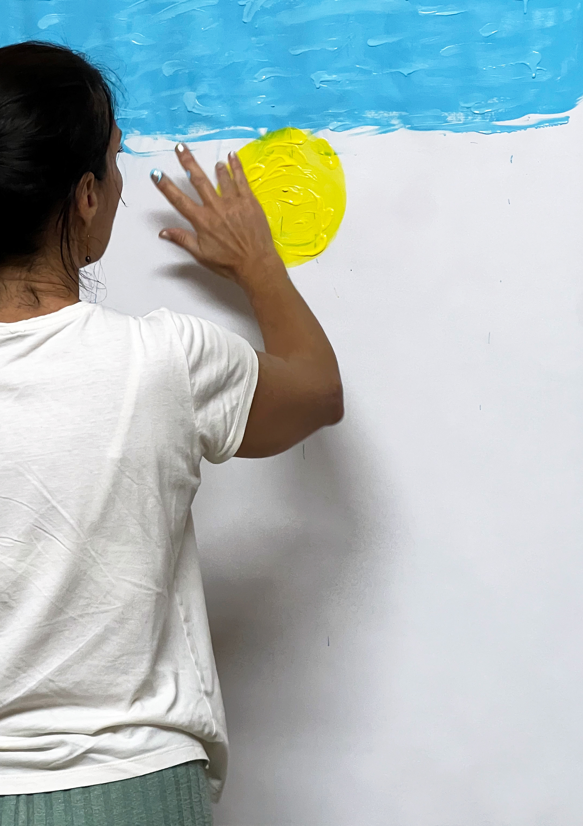 Nas sessões de Pintura Espontânea combino a pintura não-diretiva com práticas de mindfulness, movimento autêntico e consciência somática. Num espaço seguro de partilha, facilitamos o encontro entre o bem-estar emocional e o prazer da criação livre.